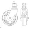> Il ns particolare sistema di forcella girevole su mozzo verticale assiale, consente la distribuzione del carico su due cuscinetti a sfere, garantendo un’eccezionale manovrabilità e durata, ulteriormente accentuata dal particolare profilo arrotondato dell’anello gommato.